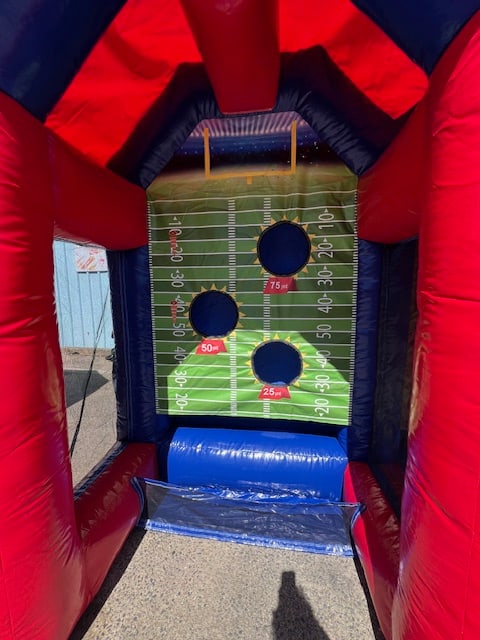 Are you ready to elevate your party or event to the next level? Introducing our Sports Arena with 3 Lanes - a thrilling inflatable that guarantees endless fun and excitement! Dive into a world of competition with three dynamic games: Football Toss, Axe Throw, and Basketball Shooter. Whether you're hosting a birthday bash, a corporate event, or a neighborhood block party, this sports arena is a surefire way to keep everyone entertained.