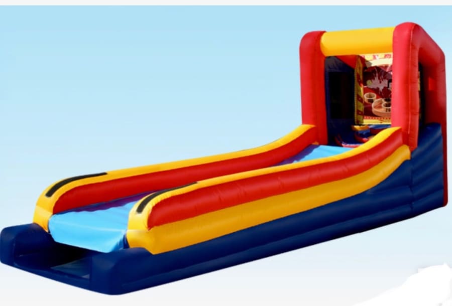 Based on the popular arcade game, Skee ball is loads of fun. Test your skills as you roll the ball down the lane, over the ramp and hopefully into a high score. This unit is about 5 foot wide and 25 feet long.
