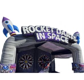 Unleash your inner astronaut with Rocket Darts, the revolutionary dart game that transports you to the cosmos! Designed with a captivating space theme, Rocket Darts features two dynamic lanes, each promising a thrilling experience for players of all ages. Whether you're hosting a birthday party, corporate event, or community gathering, Rocket Darts adds a splash of interstellar excitement to any occasion. Perfectly aligned with the high-quality standards of Morton Amusement Inflatables, this game is a must-have addition to your entertainment lineup!