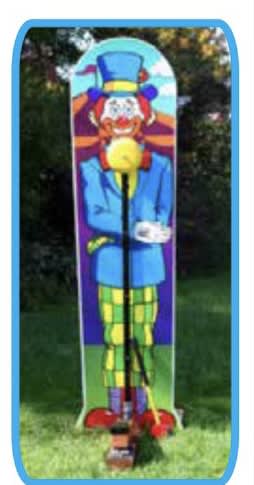 This Clown Bell ringer is great for Carnivals. It is 8 feet tall and comes with two Mallets.