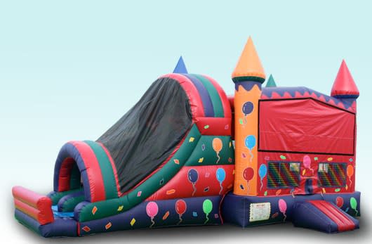 Get ready for an explosion of fun with our Balloon Combo Wet (Pool) or Dry! This incredible 32-foot long and 16-foot wide combo will be the highlight of any celebration. Whether you're hosting a birthday party, a family reunion, or a neighborhood block party, this inflatable combo is perfect for all kinds of festive occasions. All combination units have a jumping area, basket ball goal and slide. All Combination units have the ability to be used as a wet unit with a water slide that ends in a splash zone or pool.