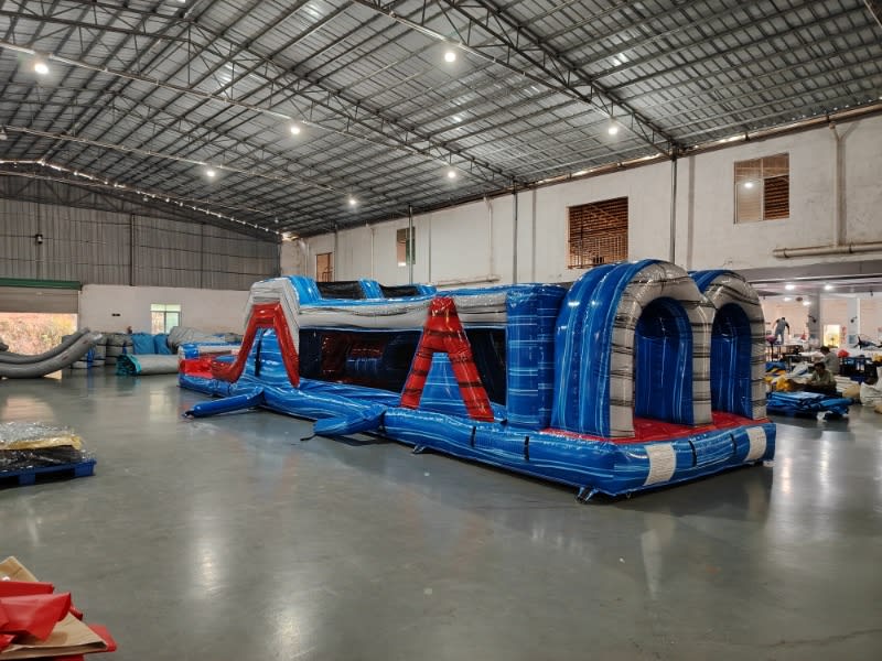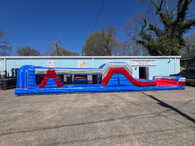 Unleash the Adventure with Morton Amusement Inflatables' 46 ft Double Lane Obstacle Wet or Dry!