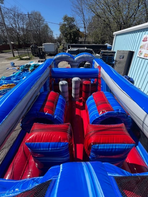 Experience the excitement of the Morton Amusement Inflatables 46 ft Double Lane Obstacle Wet or Dry in Rock Hill, Catawba, Tega Cay, McConnells, York, Clover, Chester, Lancaster, Fort Mill, and Indian Land. Our services ensure timely delivery and setup, guaranteeing hassle-free fun for everyone! 🚚