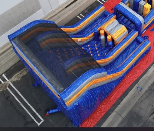 Eye-catching. Durable. Crowd-ready. The Three Story Blue Marble Ninja Wall is designed for maximum fun and visual impact at fairs, school carnivals, corporate events, and birthday blowouts. The center climbing wall challenges agility and strength while two slides deliver fast, exciting descents. Ideal for rental fleets and large events. 🚀