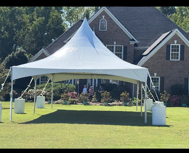 Need a reliable event tent? The 20 x 40 canopy high peak tent delivers shelter, style, and strength. Perfect for weddings, corporate events, festivals, and large gatherings. This tent combines a dramatic high peak silhouette with a wide 20 x 40 footprint for maximum usable space. Morton Amusement Inflatables 20 x 40 canopy high peak tent in York County South Carolina, rock hill, fort mill, Chester, York, Tega cay, Richburg