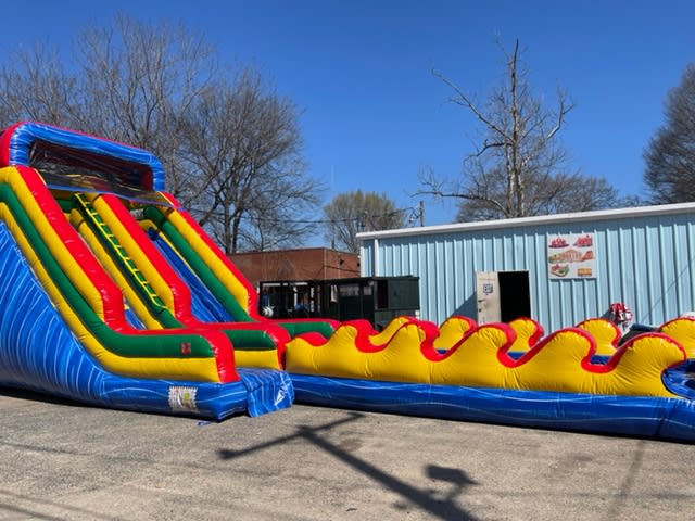 Our Ocean Water slides are some of our most popular units and fantastic for large events. Small children to adults will have a blast on these as they are sprayed coming down the 20 ft slide and then surge through the water as they continue down the elevated 25 ft slip and slide. Exit to the right and you’re back in line again. Oceans come in a variety of colors and are 16 x 37 feet long. These are perfect for VBS’s and Summer camp water days.