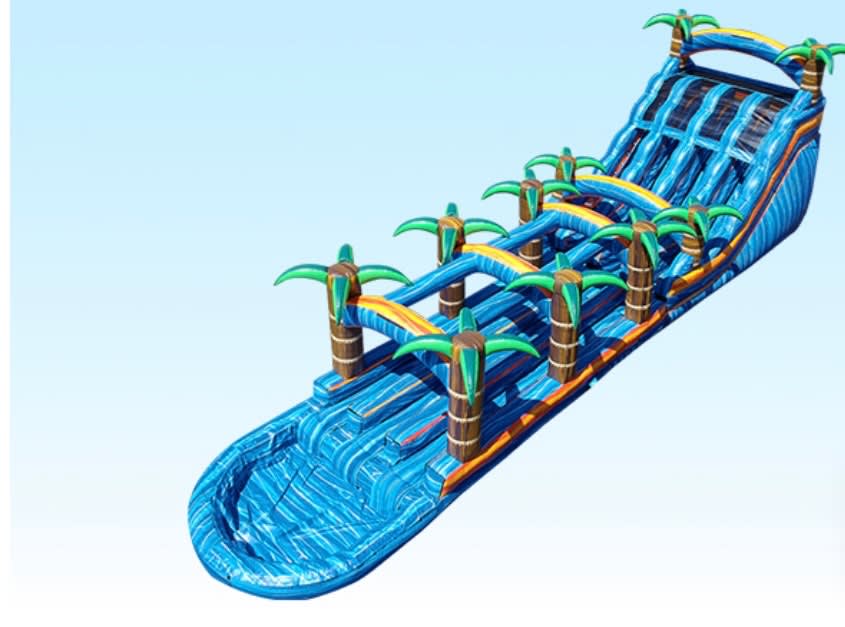The Biggest one in our fleet. This 22 foot high triple lane slide boast three slides, three slip and slides and a large pool. Comes with a generator that runs its three fans.